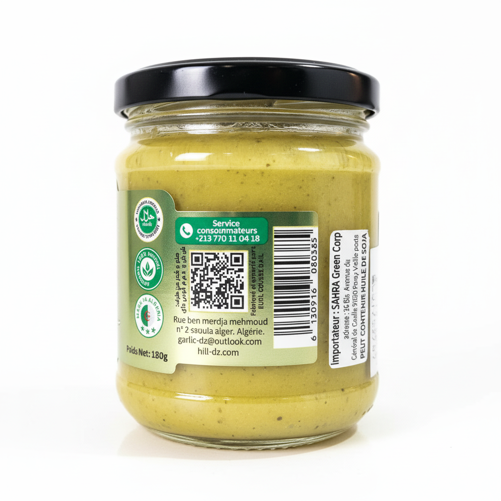 Crème d’ail est une préparation savoureuse et onctueuse, élaborée à partir d’ingrédients simples et naturels. Elle se distingue par sa texture veloutée et son goût équilibré, où l’intensité de l’ail est adoucie par la rondeur de l’huile et la fraîcheur du persil.