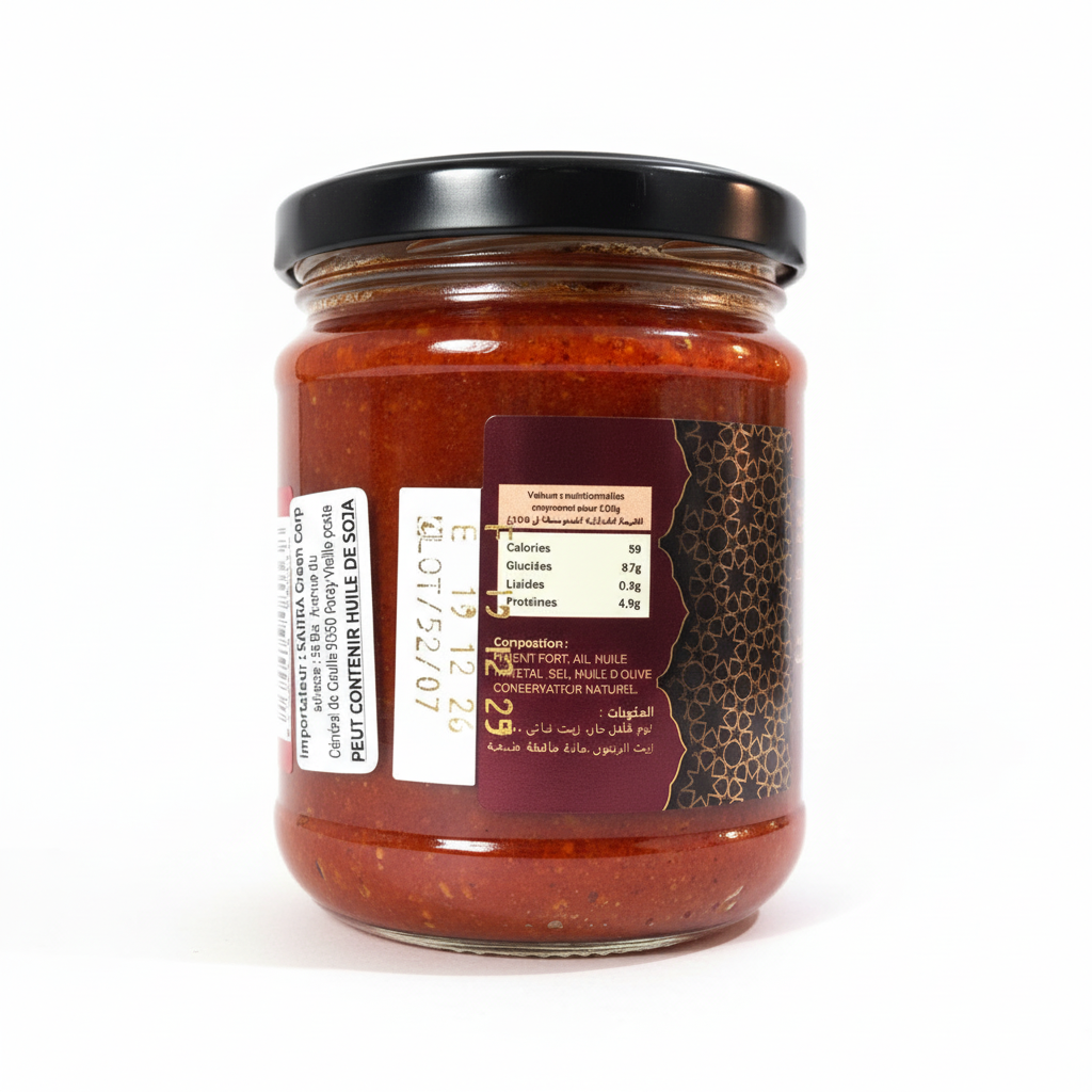 Une préparation riche et savoureuse qui met en valeur des ingrédients simples et naturels. Ce produit unique marie le piment fort pour une chaleur intense, l’ail pour une touche aromatique, l’allié incontournable des amateurs de cuisine épicée et des passionnés de saveurs méditerranéennes.