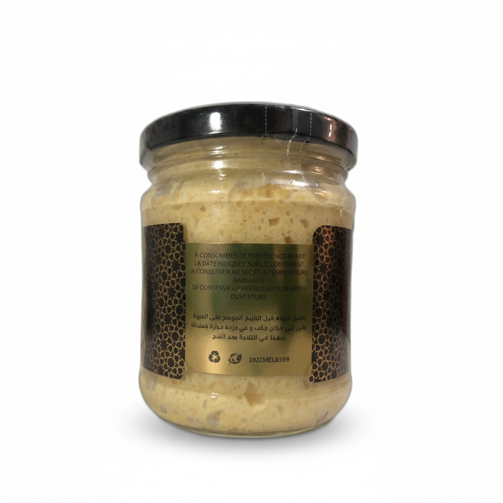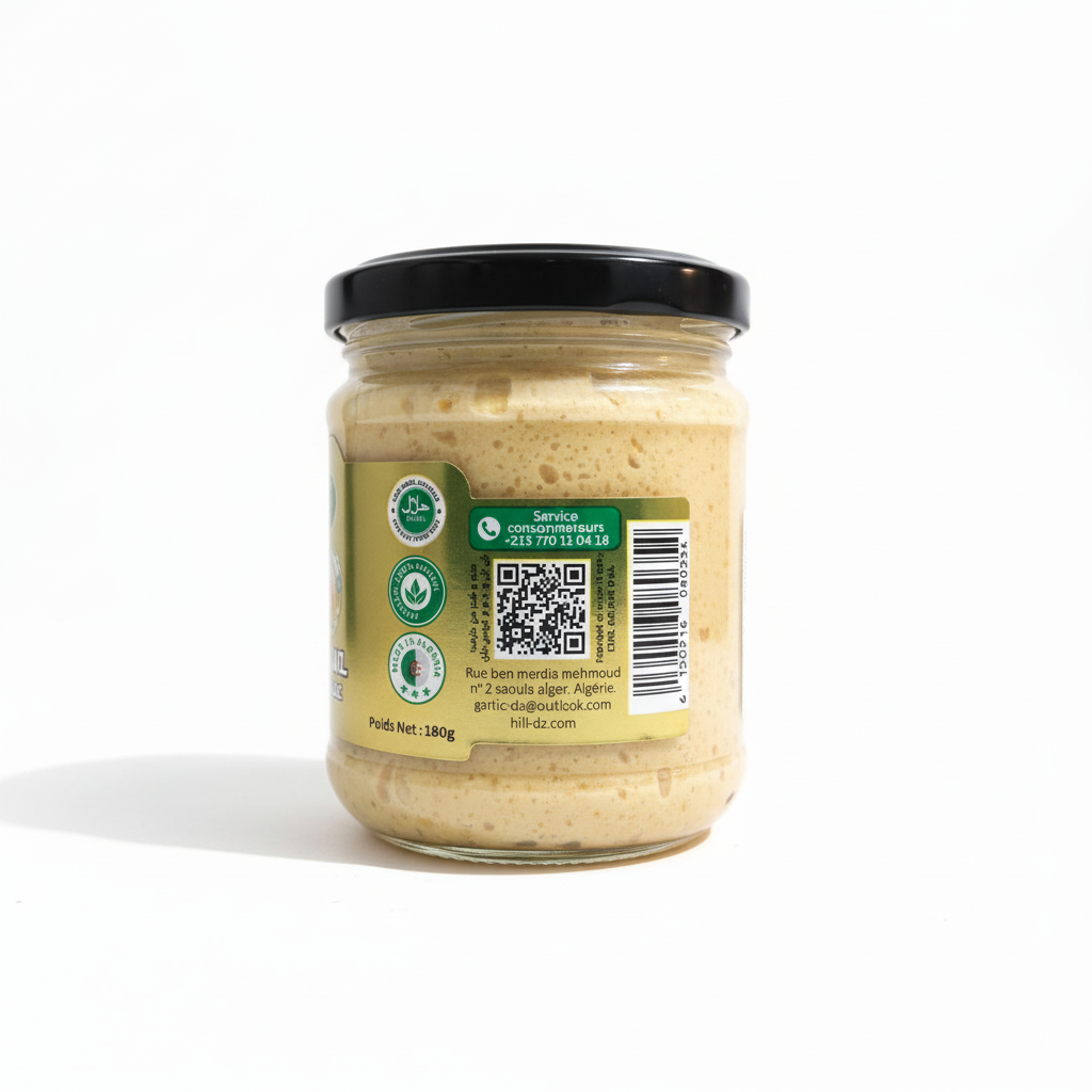Constituée d’ail frais minutieusement sélectionné, d’huile végétale douce, de sel et d’un mélange subtil d’épices, elle offre une texture onctueuse et un goût riche et équilibré. Chaque pot reflète le mariage parfait entre simplicité et intensité, idéal pour rehausser les saveurs de vos plats.