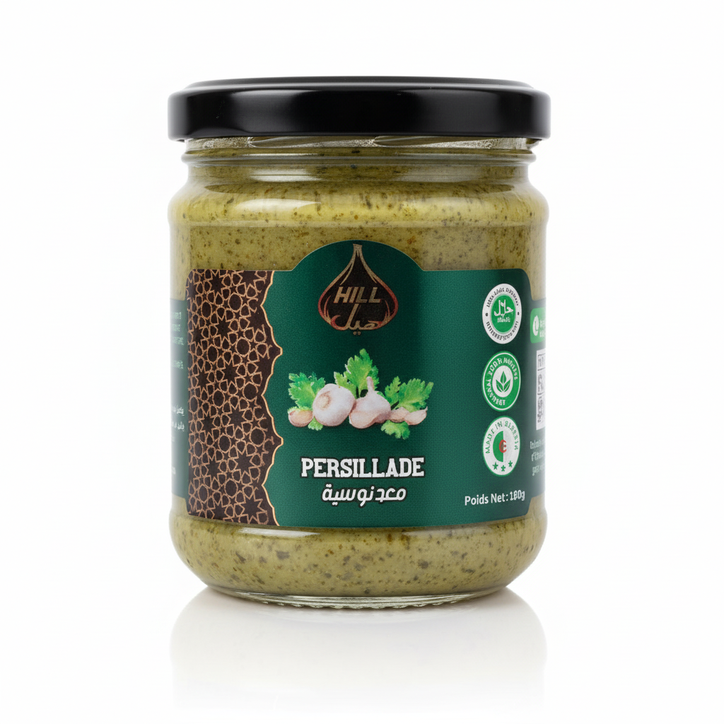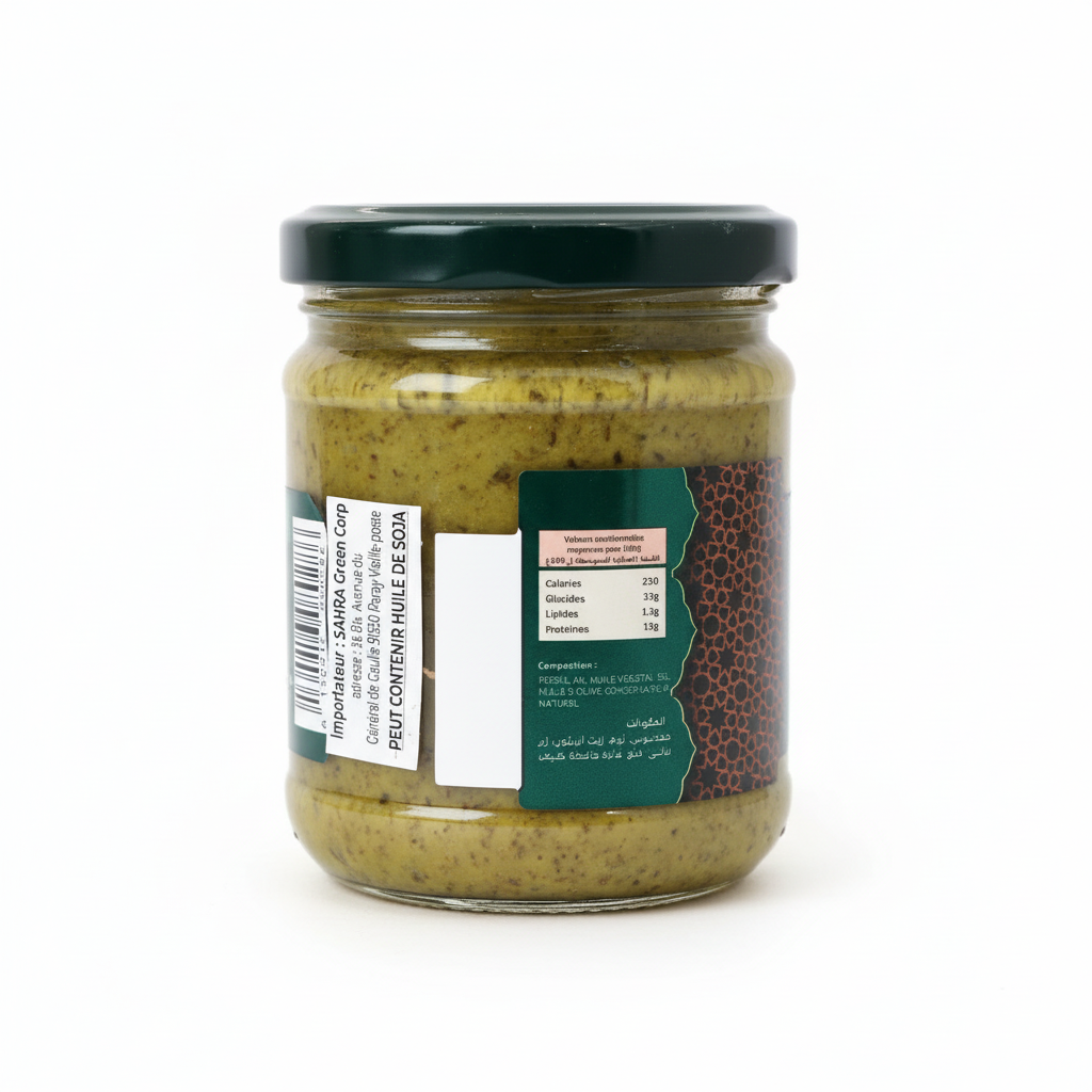 Composition : Persil, Ail, Huile végétale, Sel, Huile d’olive, Conservateur naturel